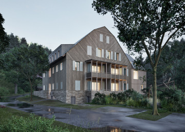 Mezi Klínem a Ostružníkem v obci Petříkov u Říčky Branné chátrá rekreační středisko ze 70. let. V rámci návrhu je náplň stavby změněna na apartmánový dům se 17 apartmánovými jednotkami. Upraveny jsou vnitřní dispozice i fasády objektu. Objem stavby je ponechán původní a východní fasáda je doplněna o přístavbu verandy.