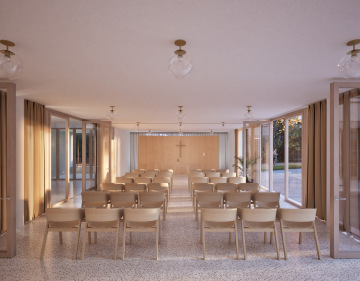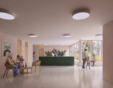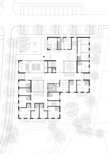 Navržený domov pro seniory je koncipován jako jednoduchý, přehledný a přívětivý dům, který poskytuje kvalitní zázemí pro své obyvatele i personál. Důraz je kladen na snadnou orientaci, bezbariérovost a přirozené propojení s okolím – zejména s nově vzniklým náměstíčkem a zahradou, které podporují každodenní kontakt s venkovním prostředím.