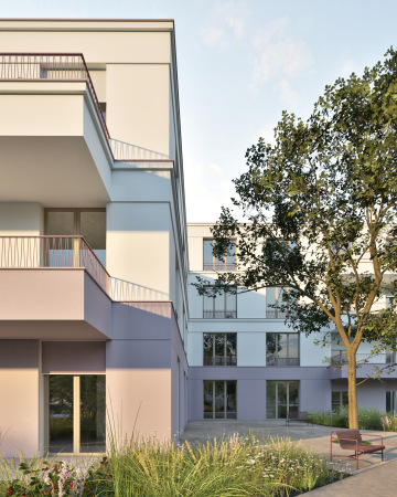Architektura je střídmá a respektující kontext místa. Fasády kombinují jemně probarvenou omítku, dřevěná okna a betonový sokl. Pravidelný rastr oken doplňují římsy, zábradlí a markýzy zajišťující stínění.