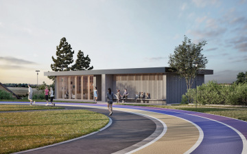 Atletické zázemí je navrženo jako kompaktní a promyšlená stavba, která i na omezeném prostoru nabízí důstojnéa otevřené prostředí pro sportovce i setkávání. Jednoduchý dřevěný objem s výrazným prosklením směrem ke sportovišti vytváří přirozené propojení interiéru s děním venku. Důraz je kladen na efektivní využití stávajících konstrukcí, kvalitní detail a příjemné mikroklima podpořené zelenou střechou.