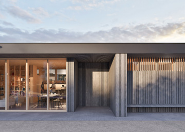Na stísněném pozemku vzniká stavba, která svou jednoduchostí a otevřeností překvapí velkorysostí. Hlavní společenský prostor je orientován ke sportovišti a díky velkému prosklení se přirozeně propojuje s okolním děním. Na něj navazuje venkovní zázemí v podobě dlouhé lavice pod přesahem střechy, která nabízí místo pro odpočinek
