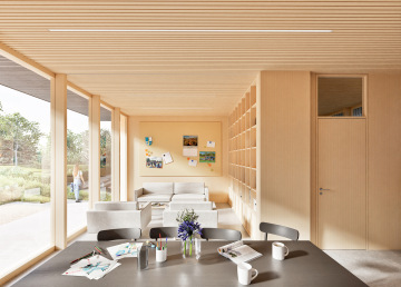 a materiálové řešení. Zelená střecha přispívá k příjemnému vnitřnímu klimatu a hospodaření s dešťovou vodou, zatímco nové výsadby stromů doplňují a obnovují okolní prostředí. Celek tak působí nenápadně, ale sebevědomě – jako přirozená součást sportovního areálu.